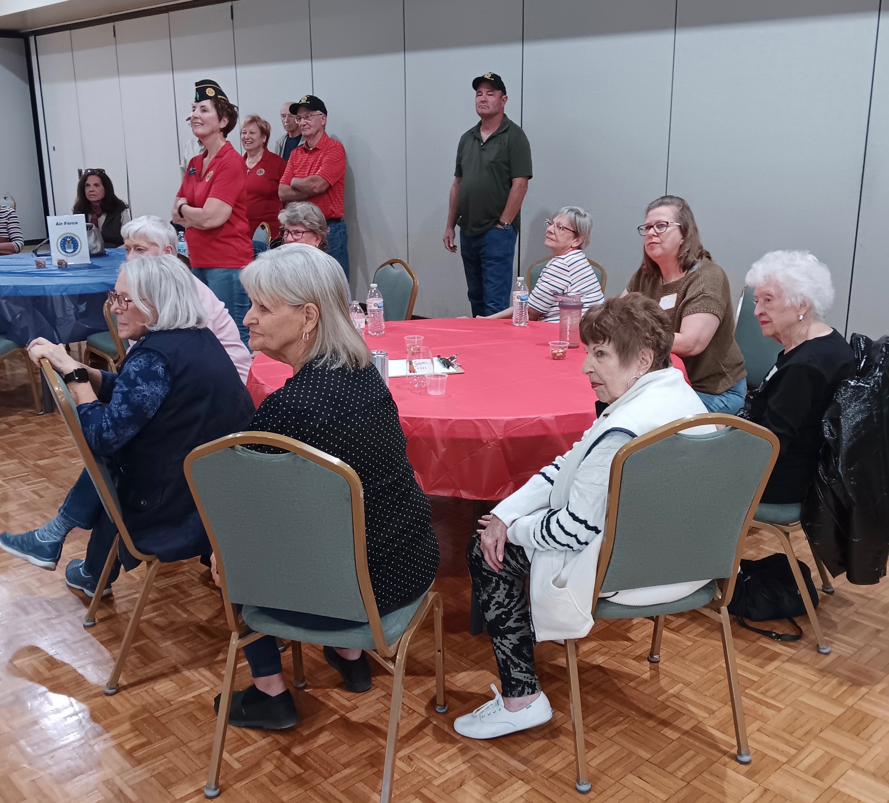Five large, round tables were set with color-coded tablecloths and signs to denote the military branches (Army, Navy, Air Force, Marines and Coast Guard).