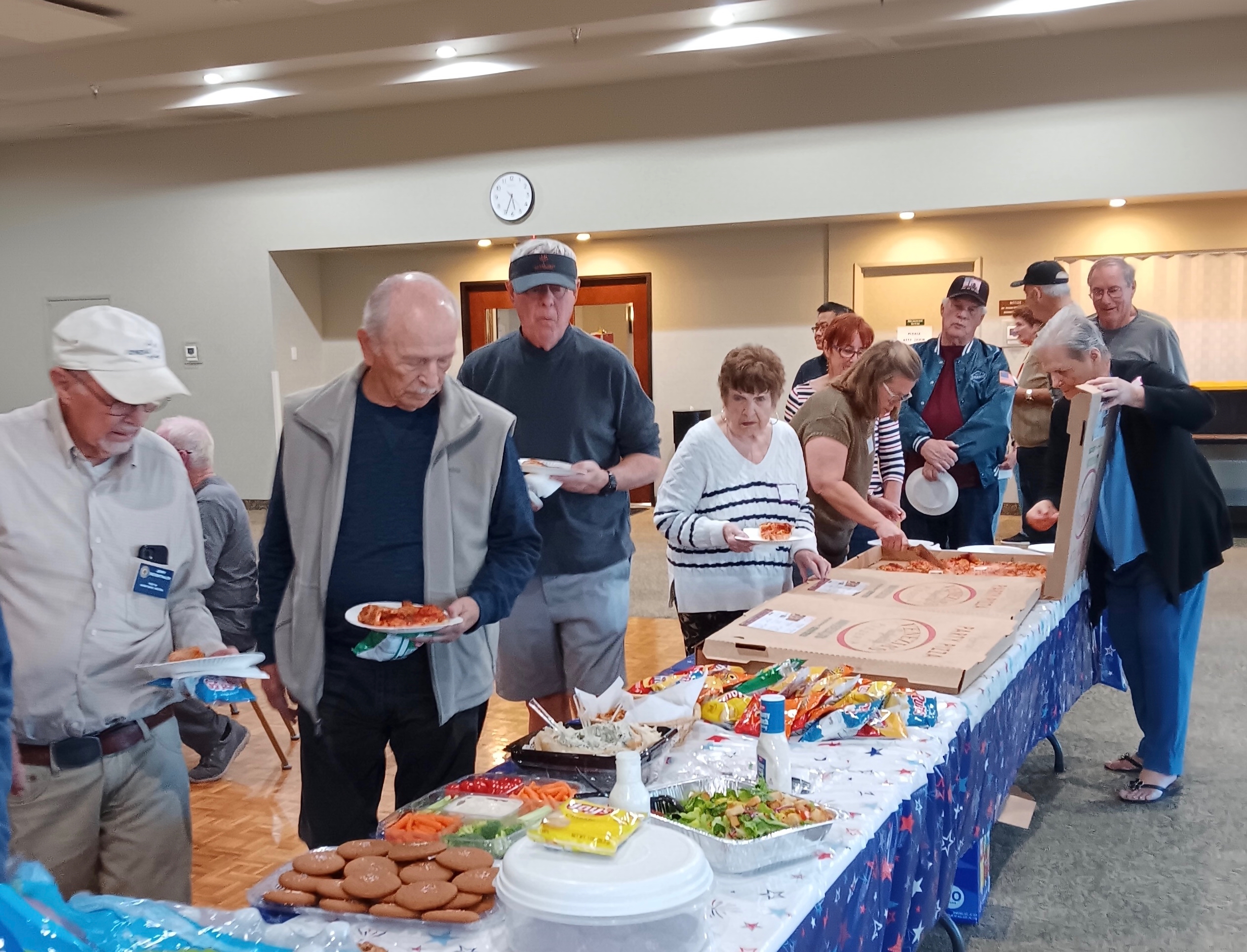All enjoyed large and delicious pizzas from Venezia’s, salads, spinach dip, and homemade molasses cookies by Darlene Hunter.
