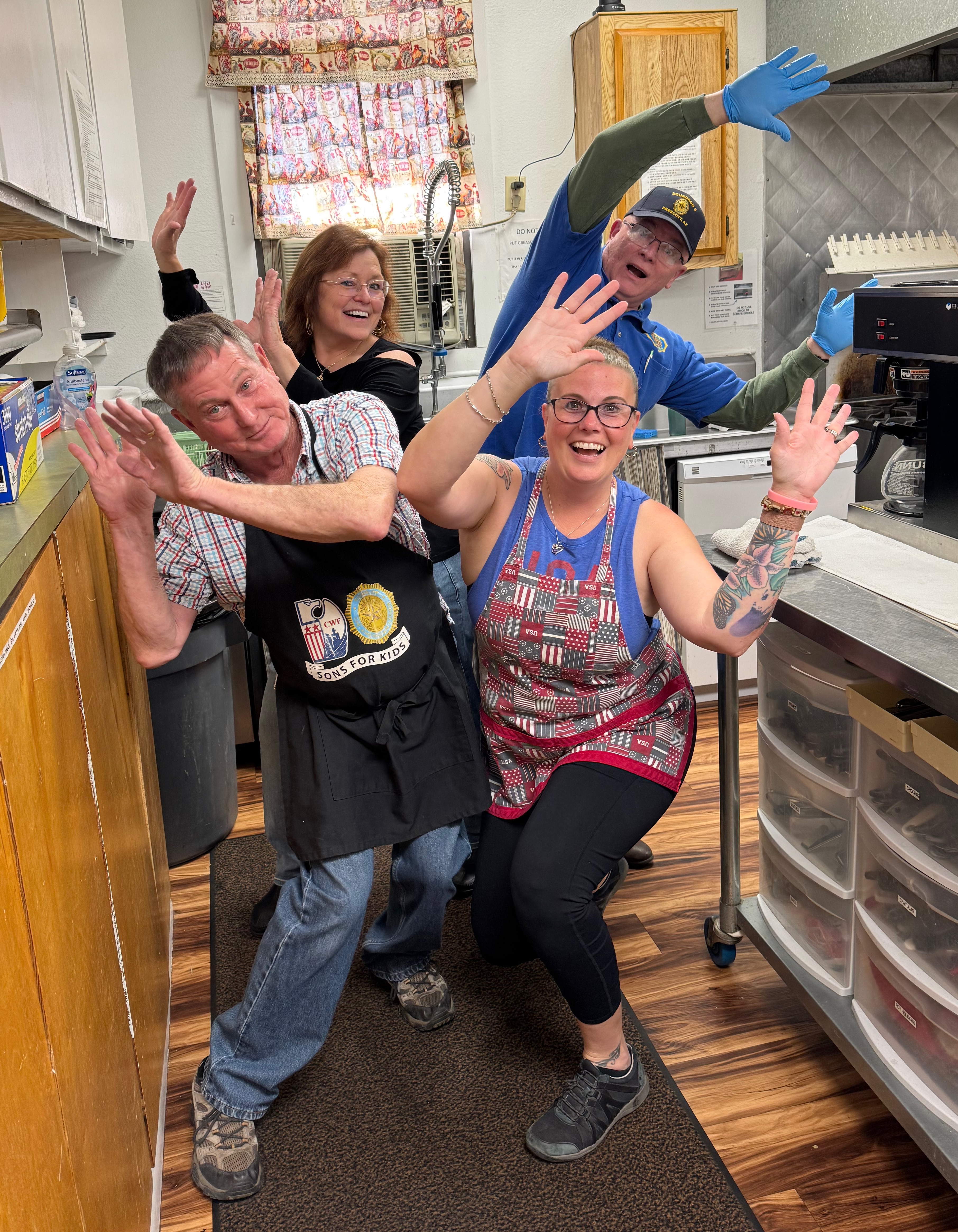 What are they serving at my post? Thousands of home-cooked meals of soup, sandwiches, tacos, eggs, potatoes, bacon, and pancakes per year. Grilled burgers to warm up the crowd for Queen of Hearts on Thursdays. Sunday breakfast is served with a healthy side of smiles and laughter.