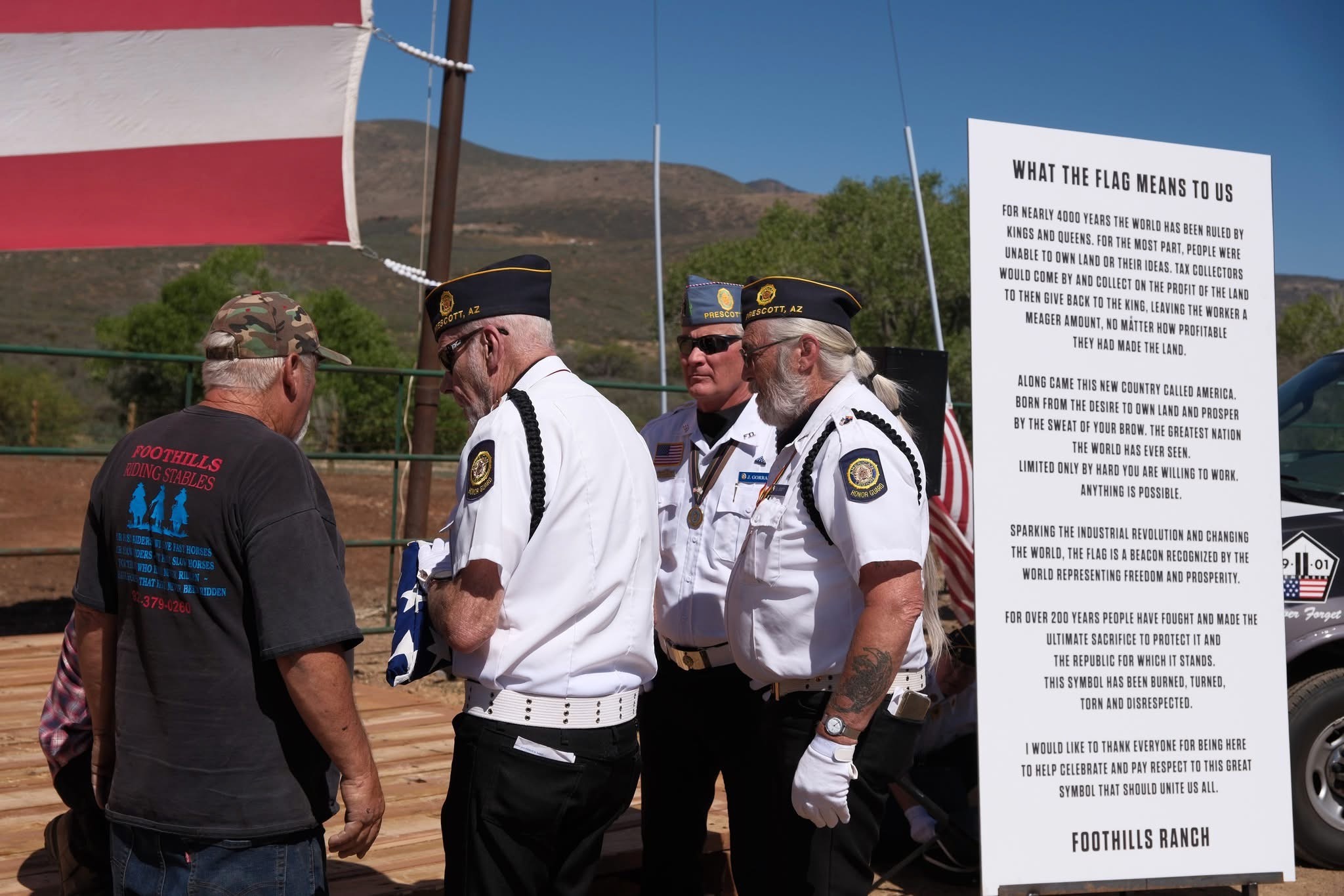 What I didn’t know while I was enjoying and appreciating the Flag Day ceremony at Foothills Ranch that day was just how much work, time, sweat, and effort went into it. Being there in person you could feel how much emotion and passion were poured into the proceedings.